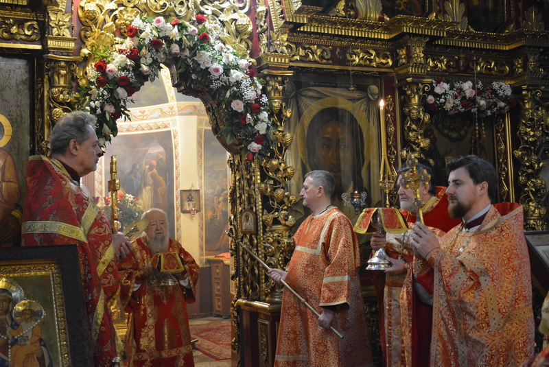 Его Высокопреосвященству сослужили протоиерей Александр Филимонов, иерей Роман Свиденюк, иерей Илия Тягин, протодиакон Николай Султан, клирики храма и диакон Даниил Кабанов, студент III курса Перервинской духовной семинарии.