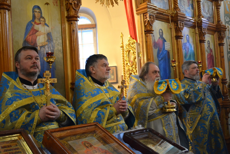 После Божественной Литургии духовенство совершило молебное пение пред праздничной чтимой иконой Пресвятой Богородицы.